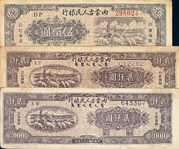 抗日戰(zhàn)爭勝利后,內蒙古人民最早實現(xiàn)了民族區(qū)域自治,1946年,東蒙古人民自治政府在烏蘭浩特成立,開始印發(fā)“人民自治政府政府暫行流通券”,起初在東北范圍內流通。1947年5月,內蒙古自治區(qū)人民政府成立,流通券改名為內蒙幣,并逐漸進入到原蒙疆地區(qū)開始流通,成為內蒙古地區(qū)百姓常用貨幣。